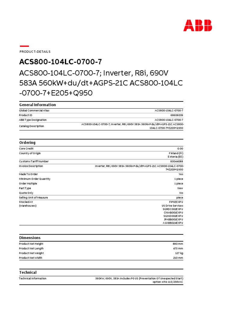 ABB ACS800104LC07007 Inverter PDF Economies Business