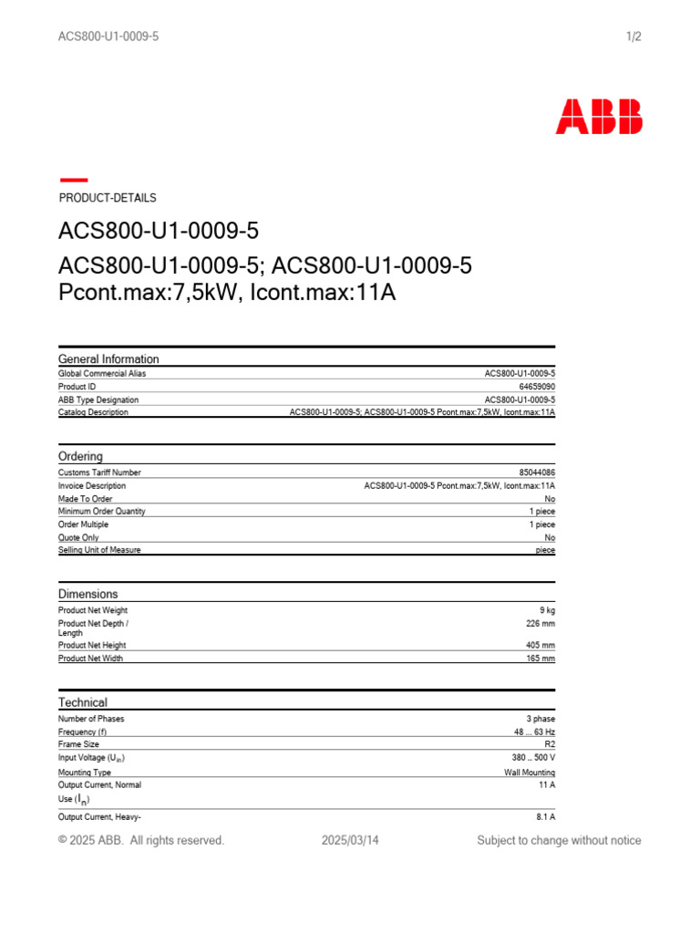 ABB Industrial Drives ACS800, Single Drives, 0.55 To 5600 KW Technical