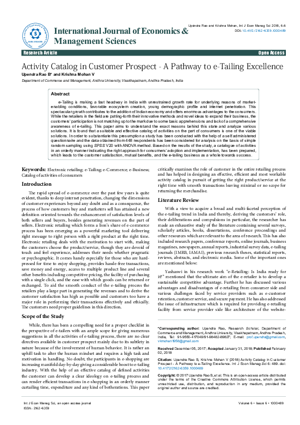 (PDF) Activity Catalog in Customer Prospect A Pathway to eTailing
