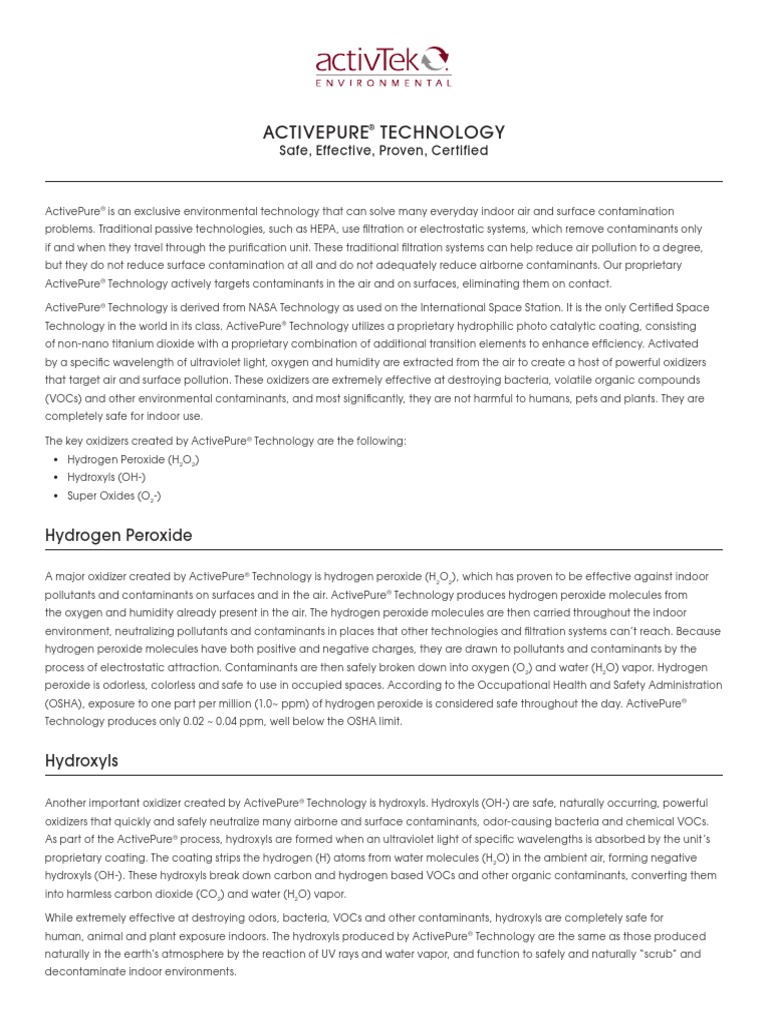 Exhibit 2 ActivTek ActivePure Technology PDF Ozone Water