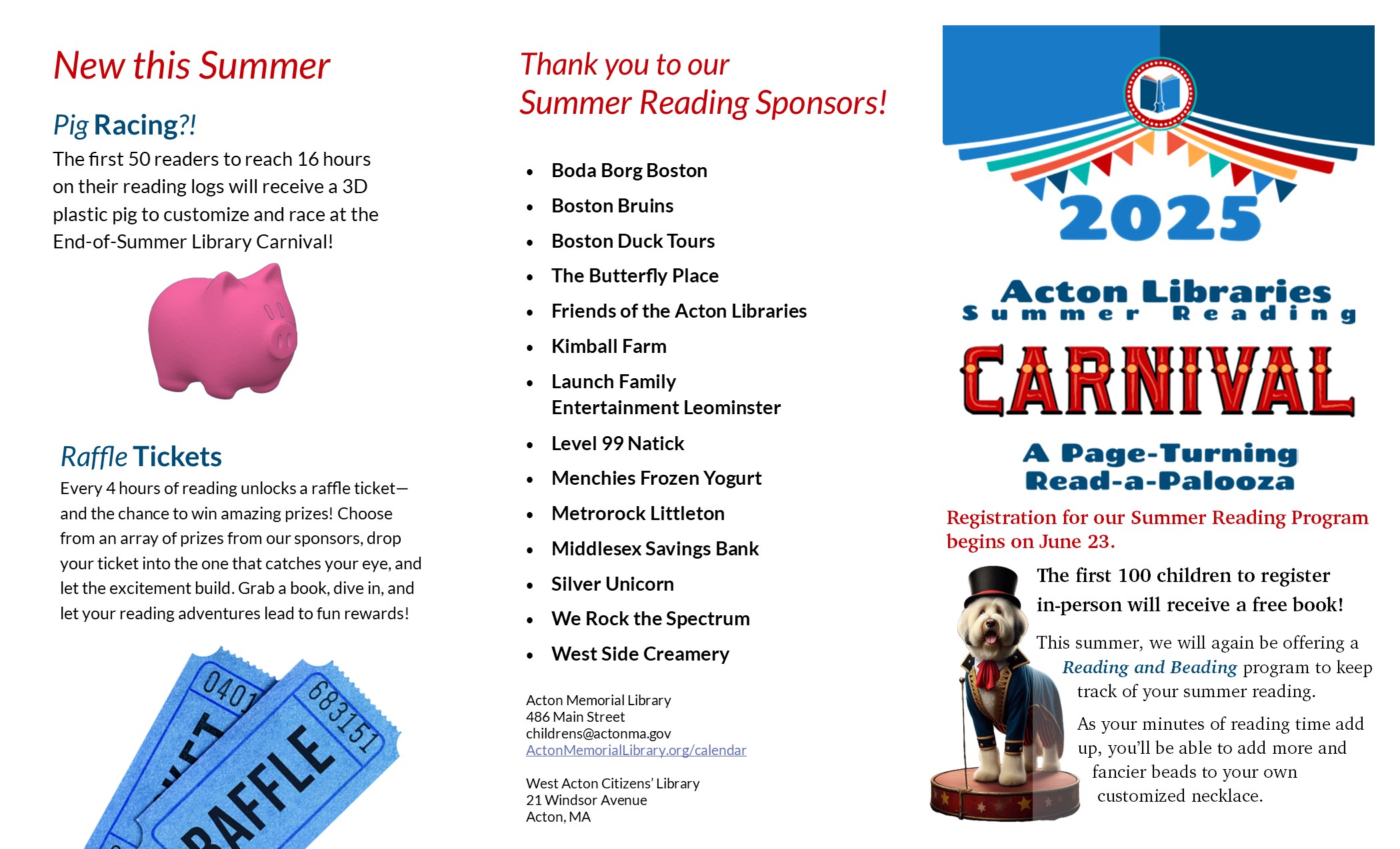 Summer Reading Program for Children 2025 Acton Memorial Library
