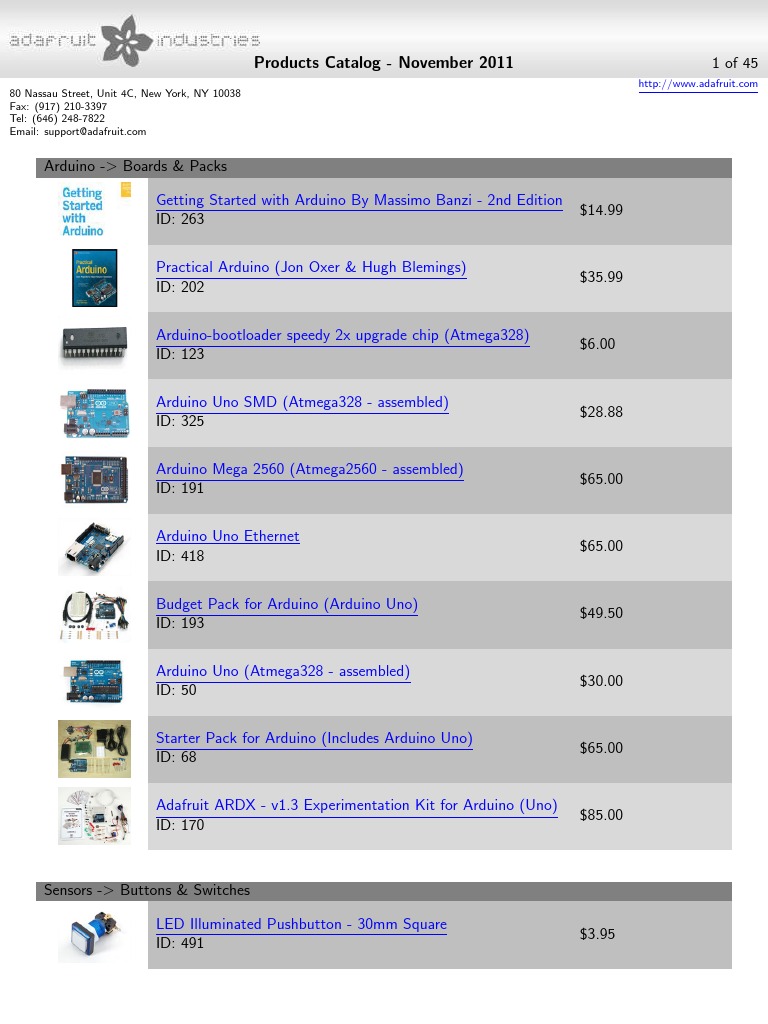 Adafruit Catalog PDF Arduino Backlight