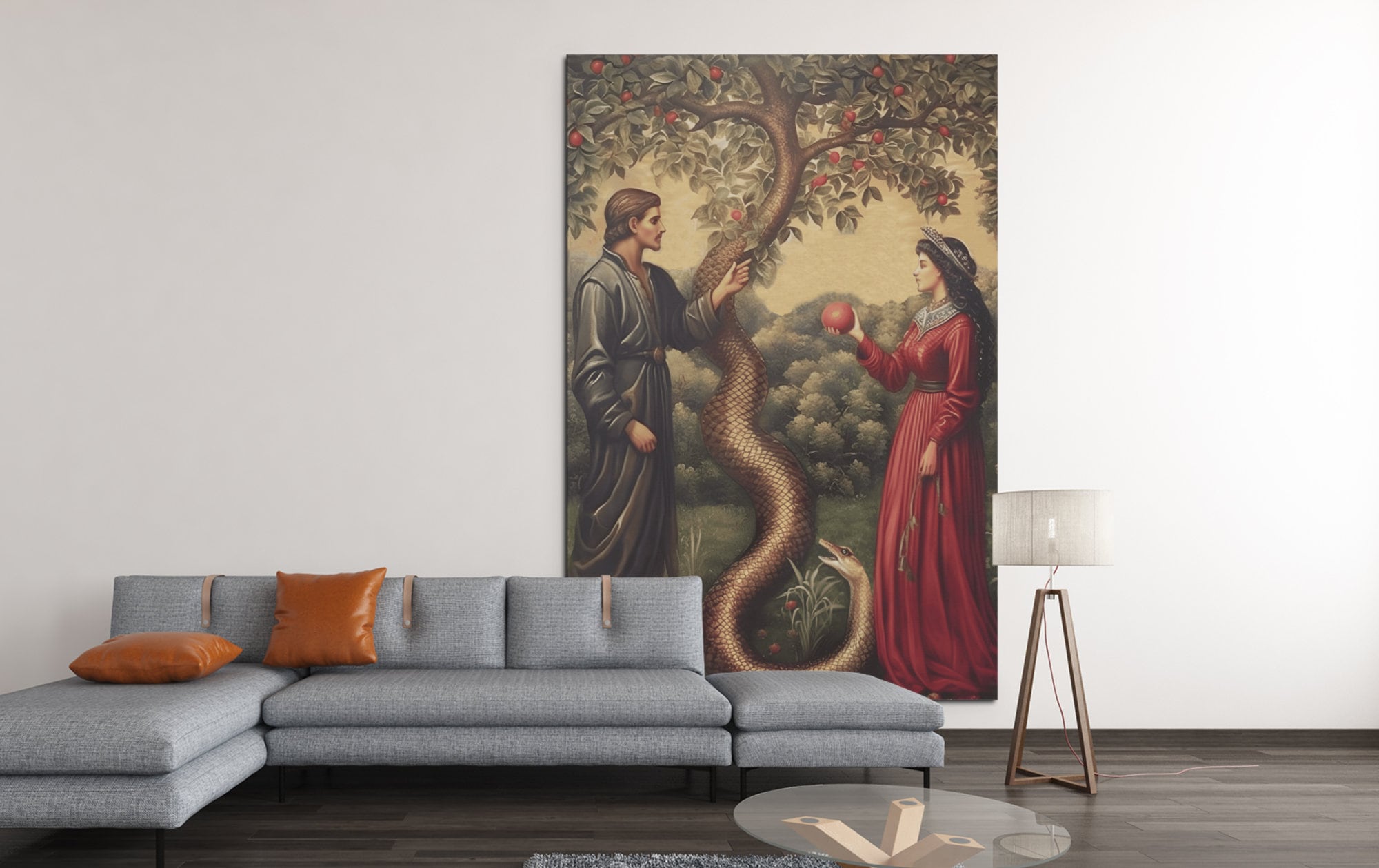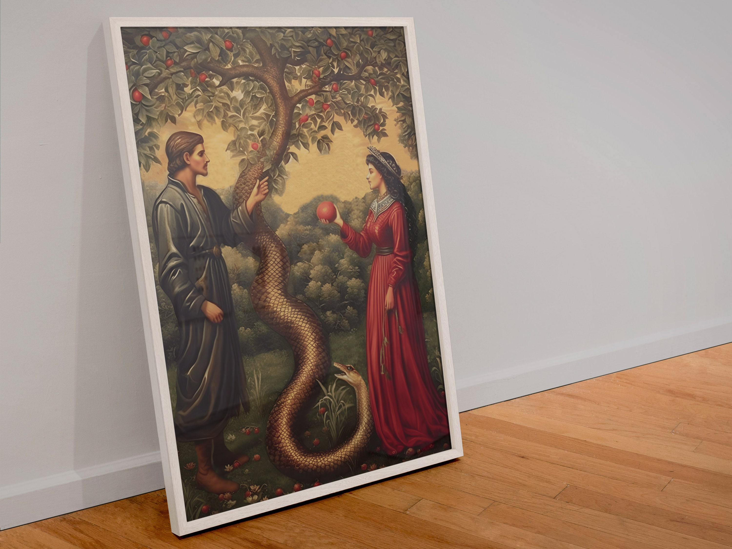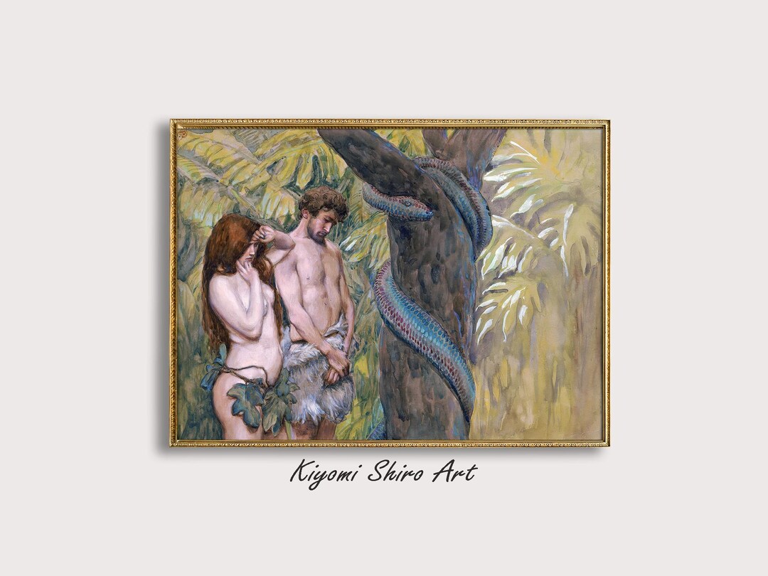 Adam and Eve Forbidden Fruit Painting, Genesis 3 Biblical Narrative Art