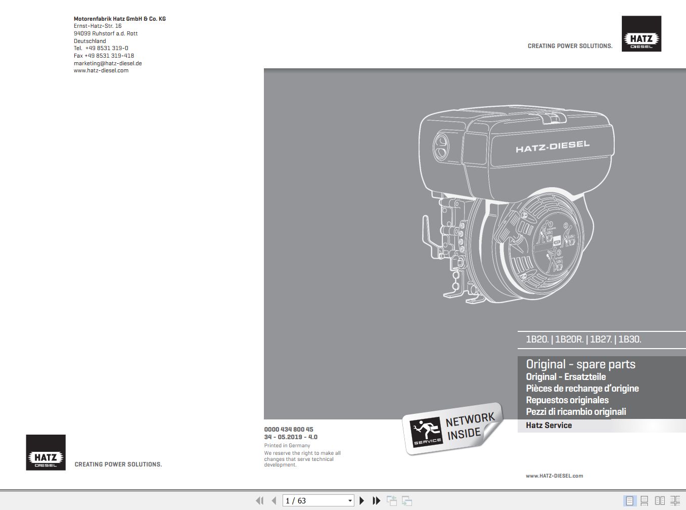 Hatz Engine 1B20 1B20R 1B27 1B30 Spare Parts Catalog 2019