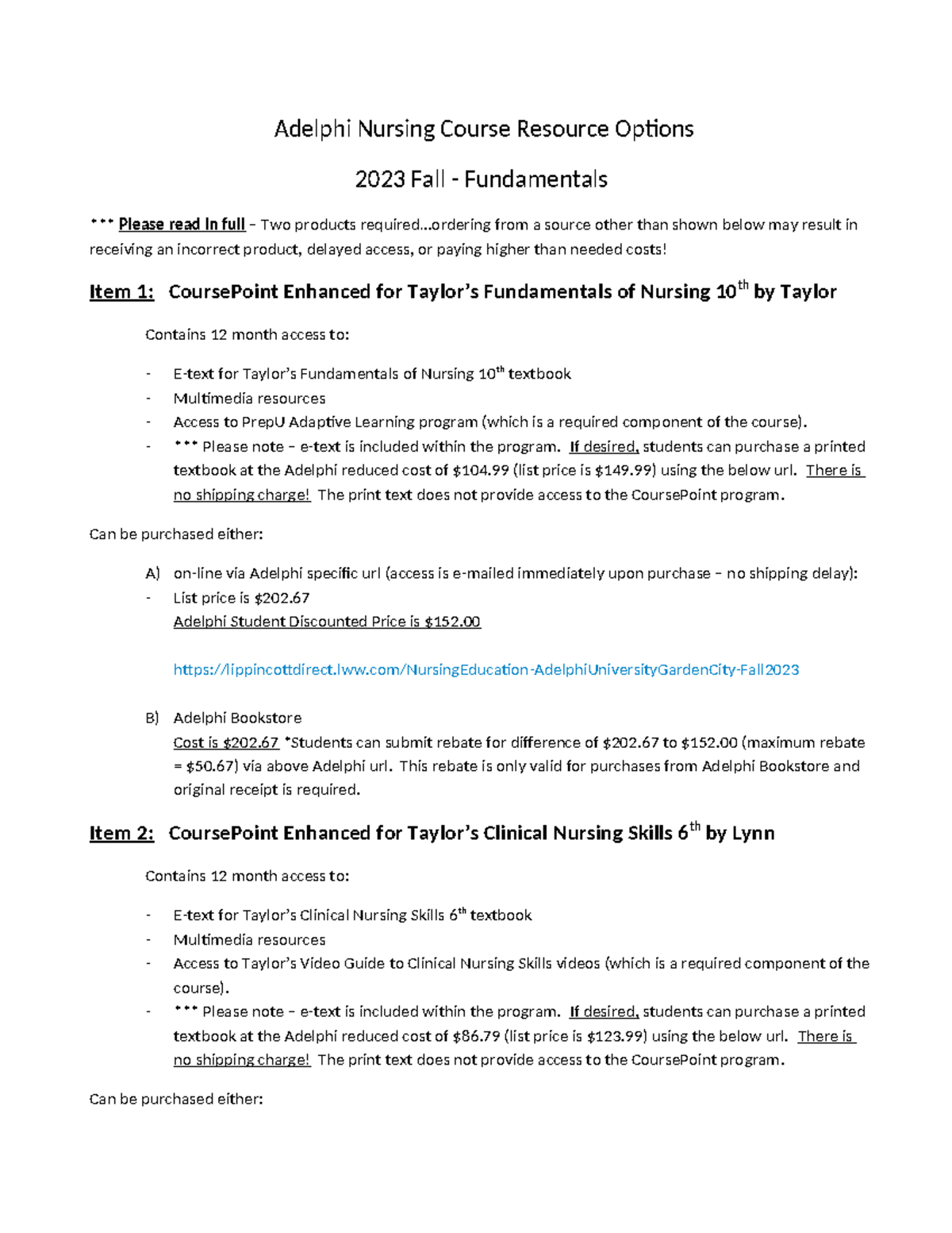 2 Adelphi 2023 Fall Fundamentals Student Options Adelphi Nursing