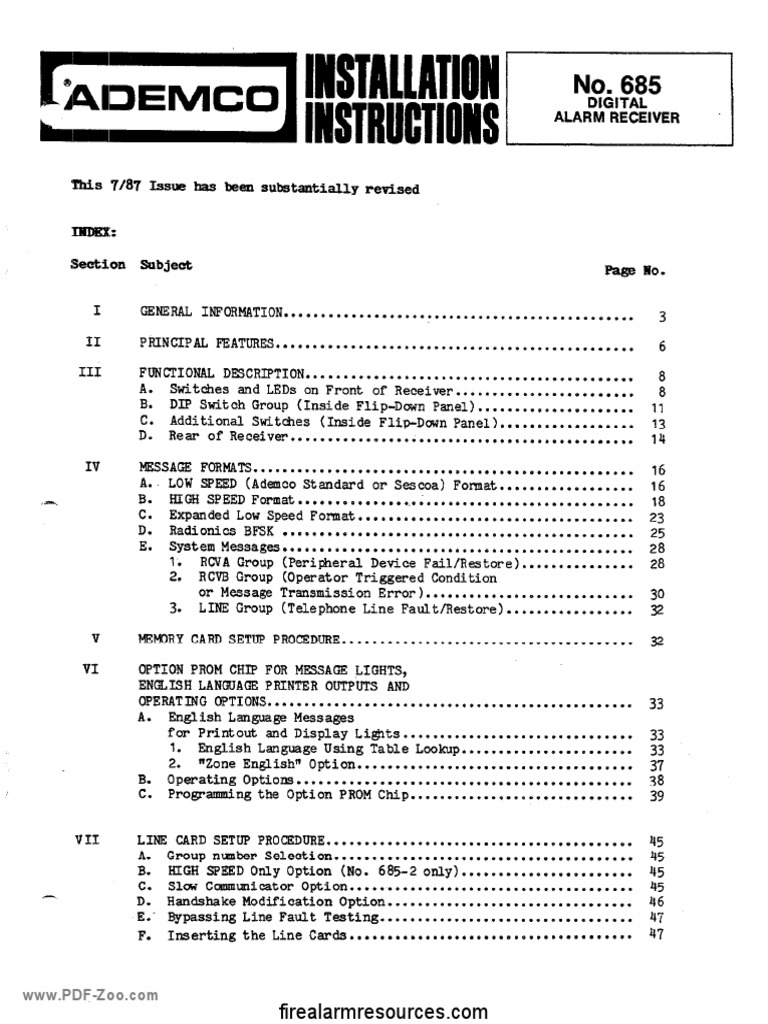 Ademco 685 Digital Alarm Receiver Installation Manual PDF