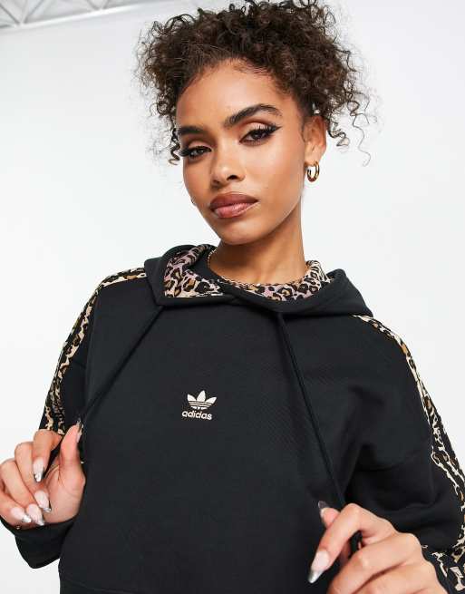 adidas Originals cropped hoodie with leopard print stripes in black ASOS