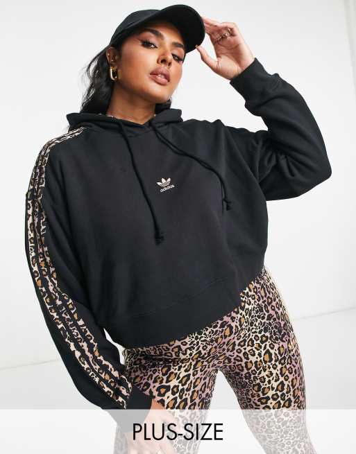 adidas Originals Plus cropped hoodie with leopard print stripes in