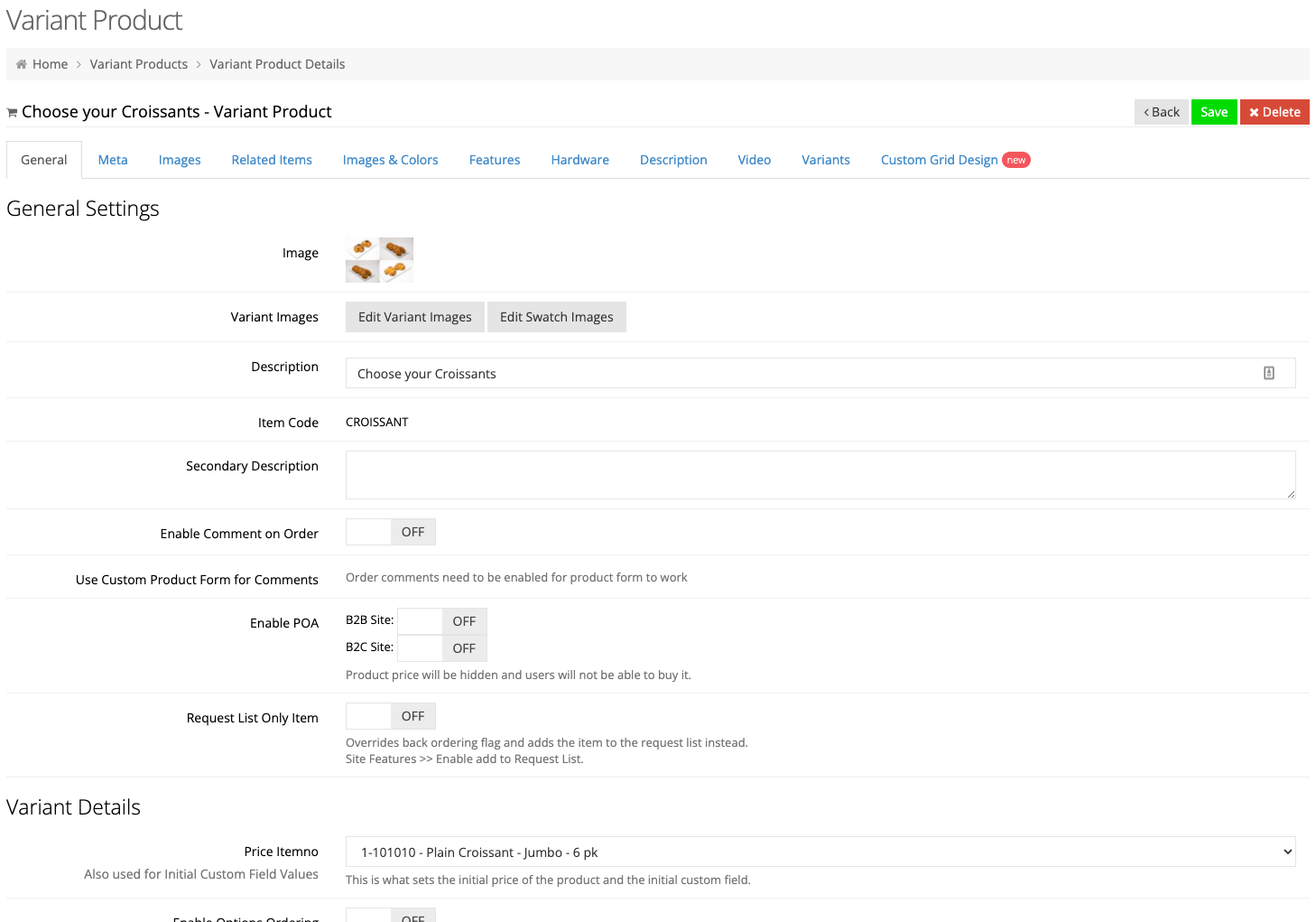 Admin > Catalog > Product Variations > Variant Products commercebuild