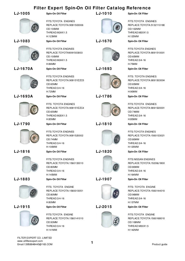Oil Filter CATALOG YINPEI AUTO PARTS