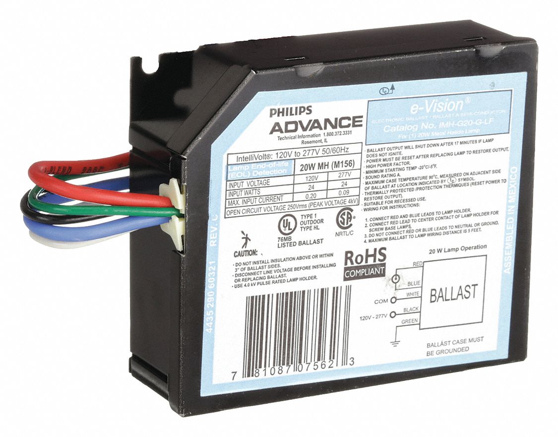 ADVANCE, Metal Halide, 20 W Bulb Watt Max, HID Ballast 30PL08IMH