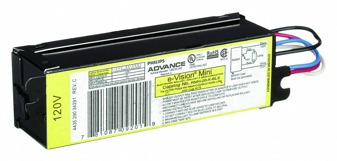 ADVANCE, Metal Halide, 22 W Bulb Watt Max, HID Ballast 30PL09RMH
