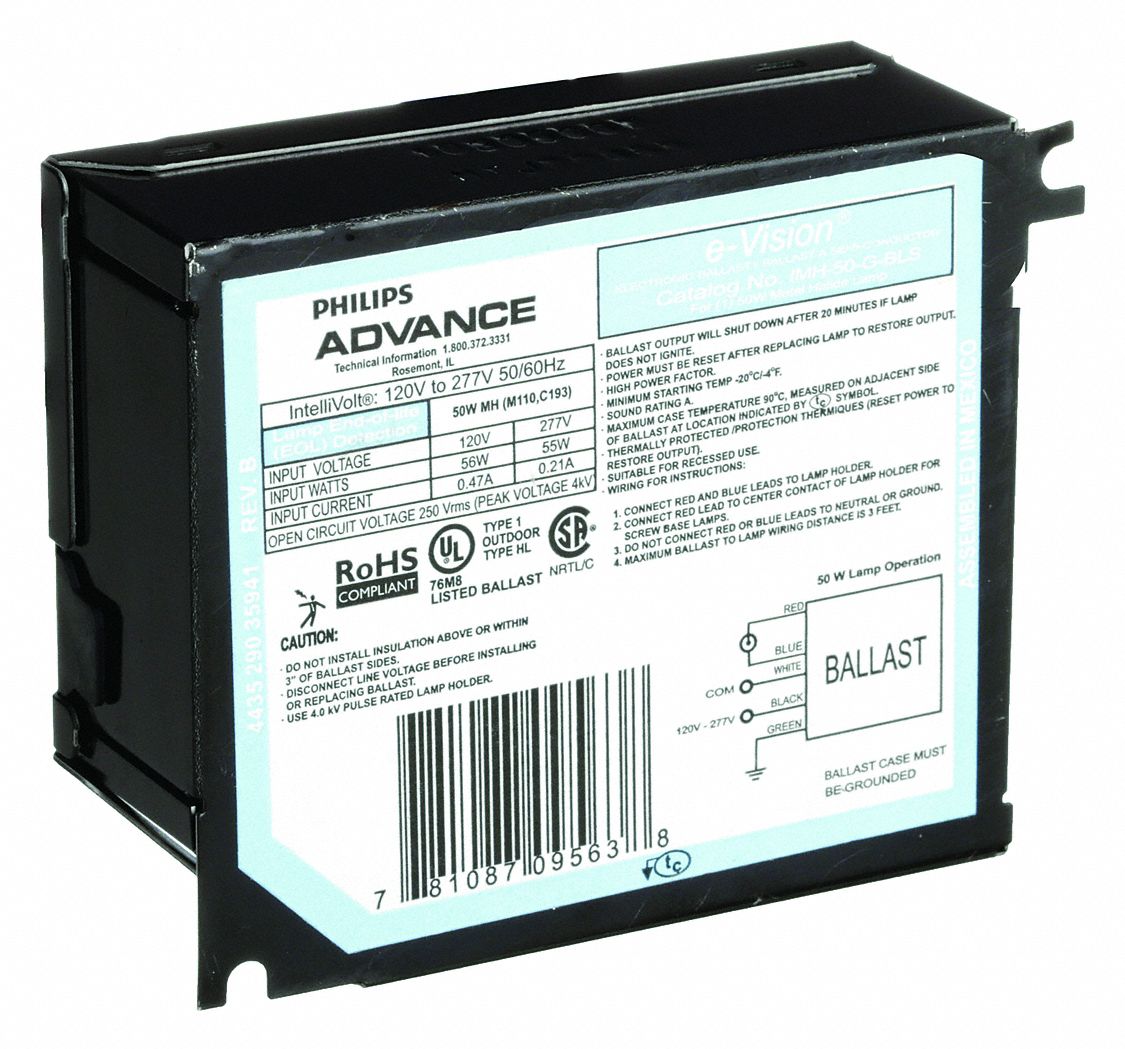 ADVANCE, Metal Halide, 50 W Bulb Watt Max, HID Ballast 41D987IMH
