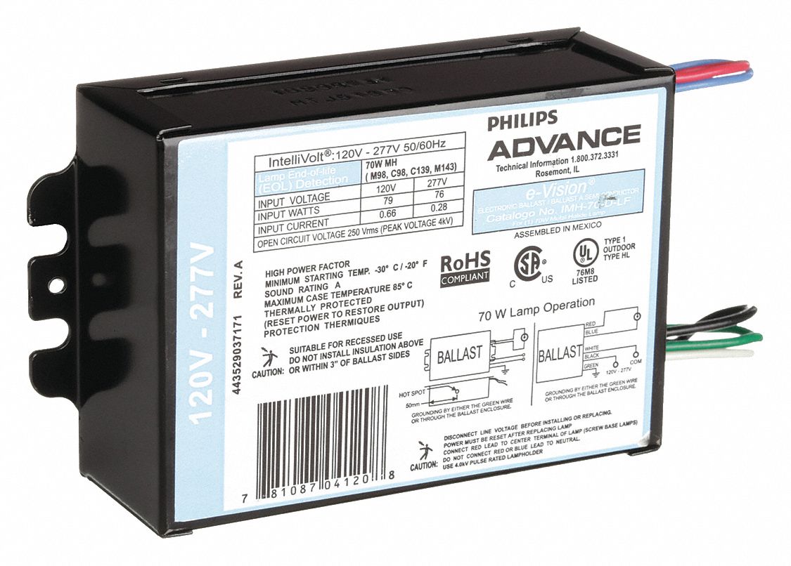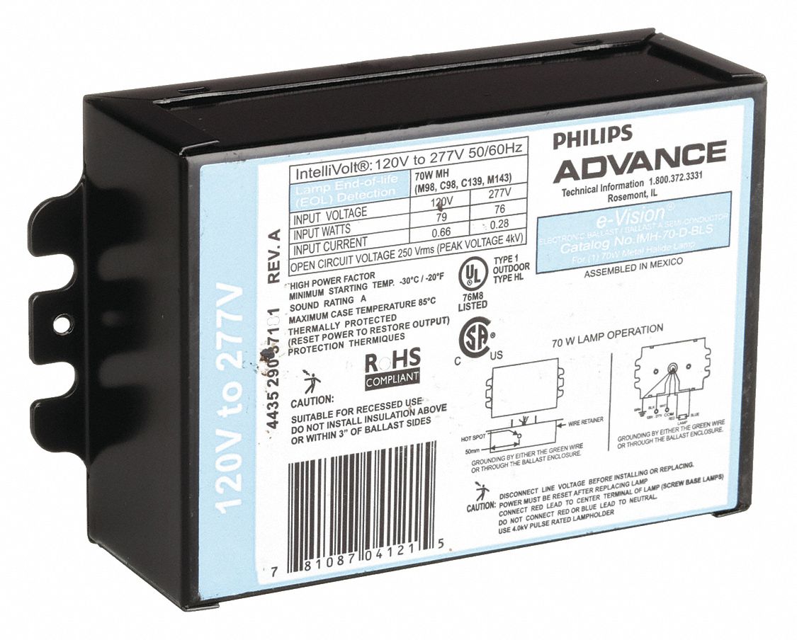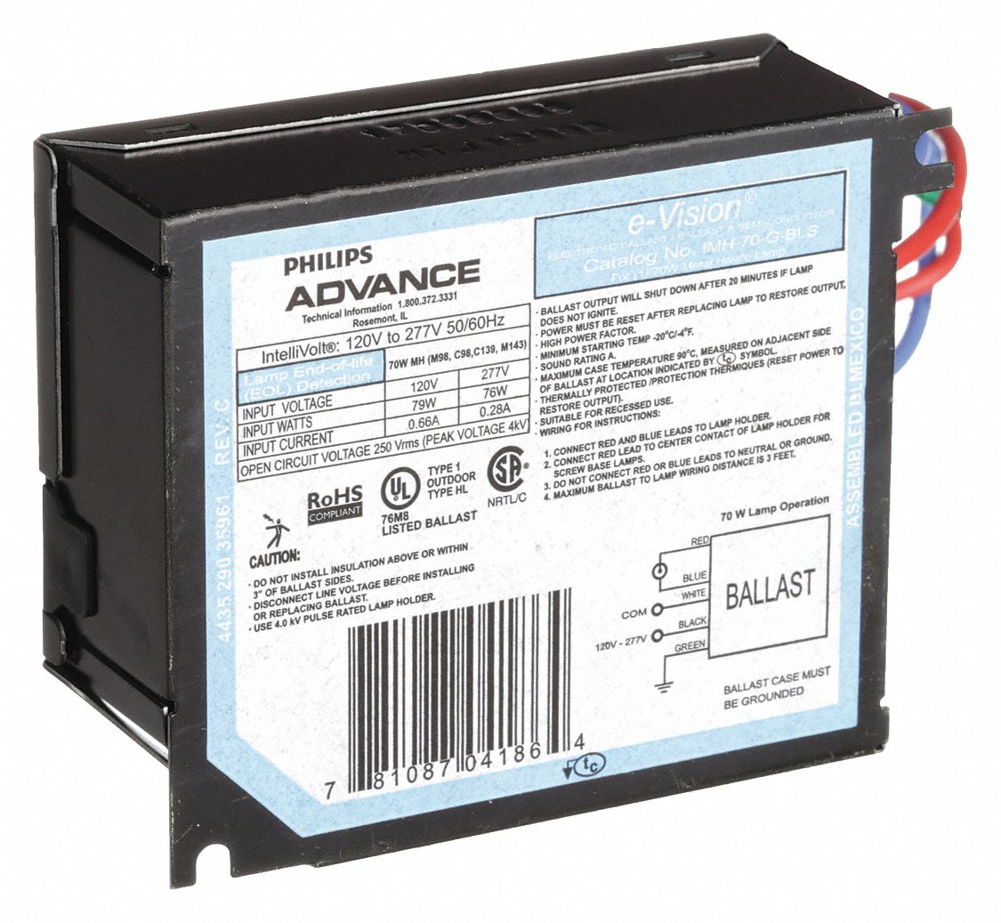ADVANCE, Metal Halide, 70 W Bulb Watt Max, HID Ballast 4HGK1IMH70