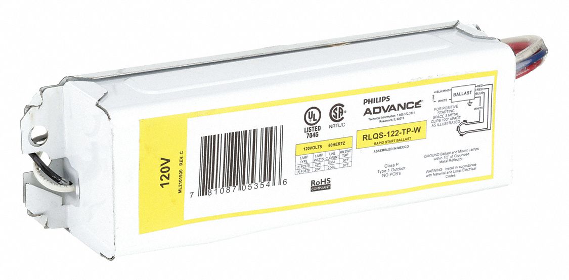 ADVANCE, T9, 120V AC, Fluorescent Ballast 6V872RLQS122TPW Grainger