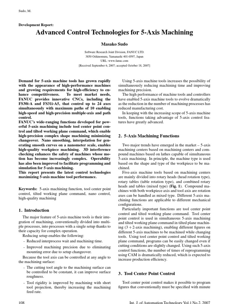 Advanced Control Technologies For 5Axis Machining Masako Sudo