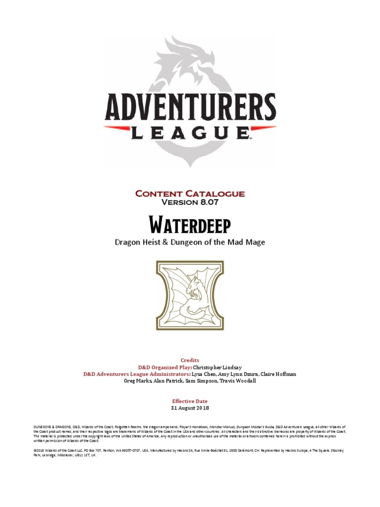 925821Adventurers League Content Catalogue v8.07 PDF Dungeons