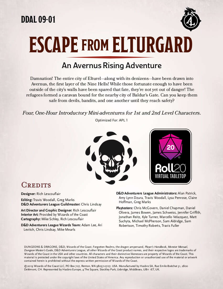 DDAL0901 Escape From Elturgard Roll20 D&D Adventurers League