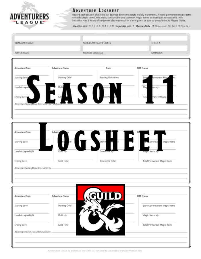 Adventurers League (AL) Season 11 logsheet (unofficial) Dungeon