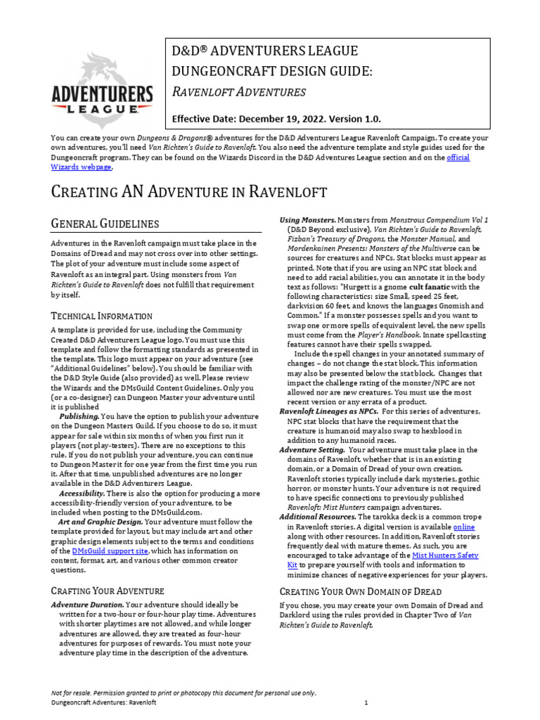 DD Adventurers League Dungeoncraft Ravenloft v1.0 PDF