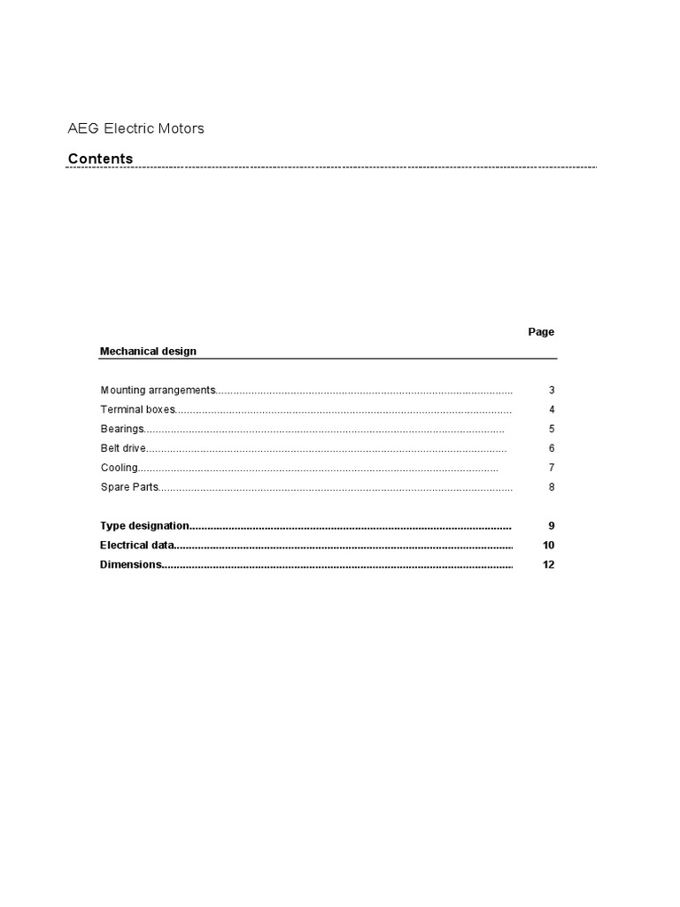 AEG Elctric Motors PDF Tolerancia de ingeniería Agua