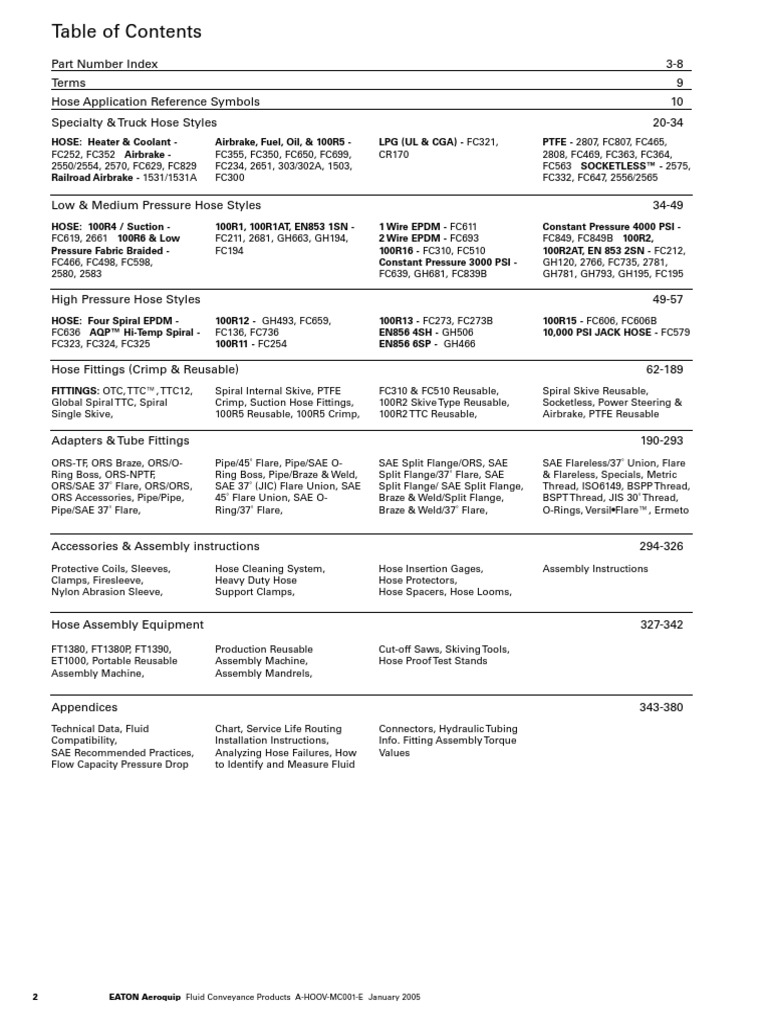 2 EATON Aeroquip Fluid Conveyance Products AHOOVMC001E January 2005