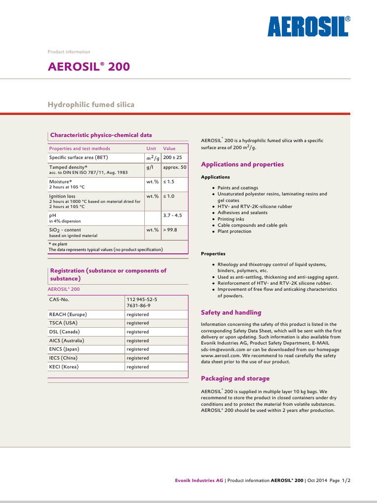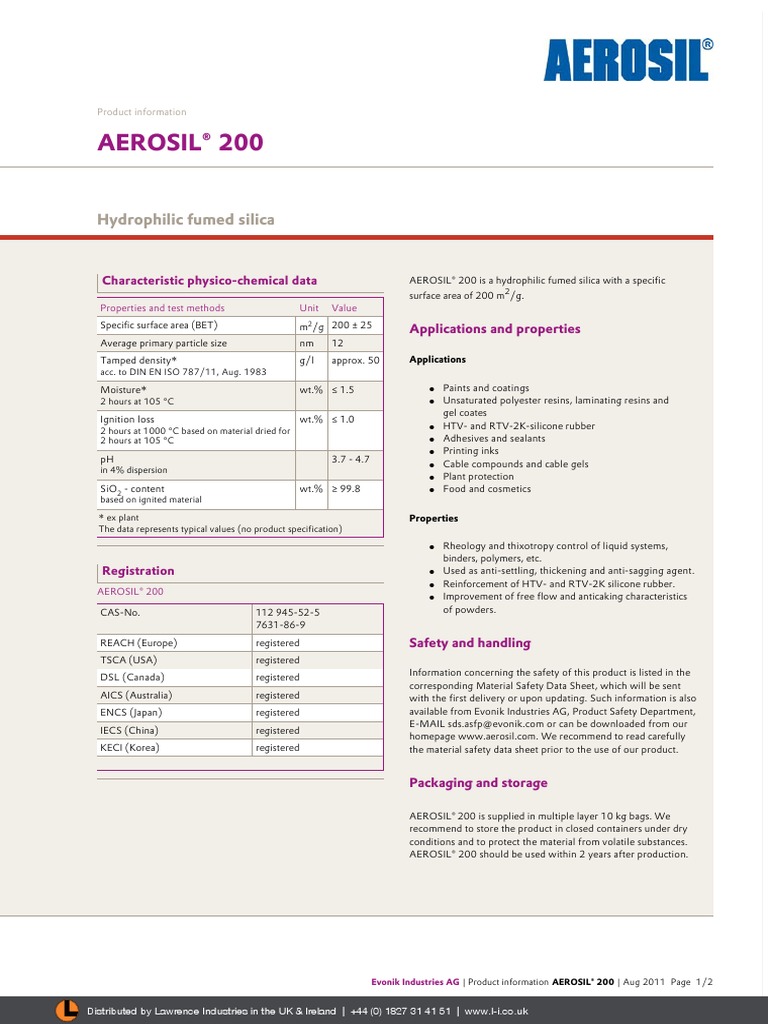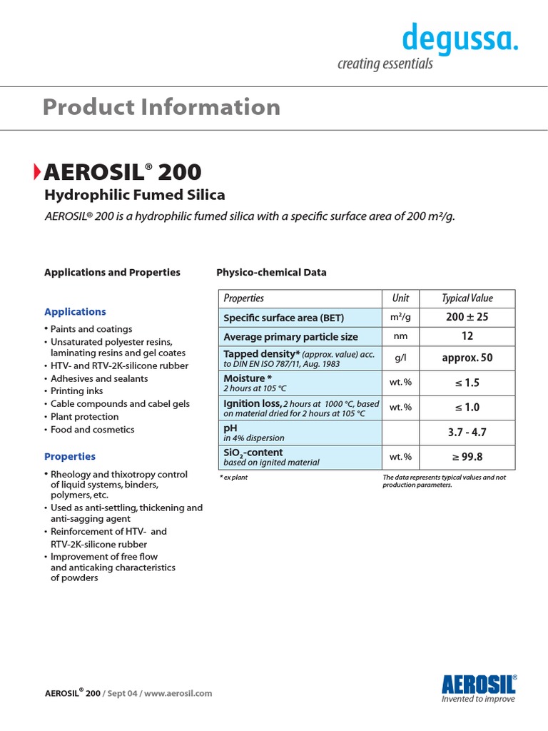 AEROSIL® 200 Hydrophilic Fumed Silica PDF Gel Silicone