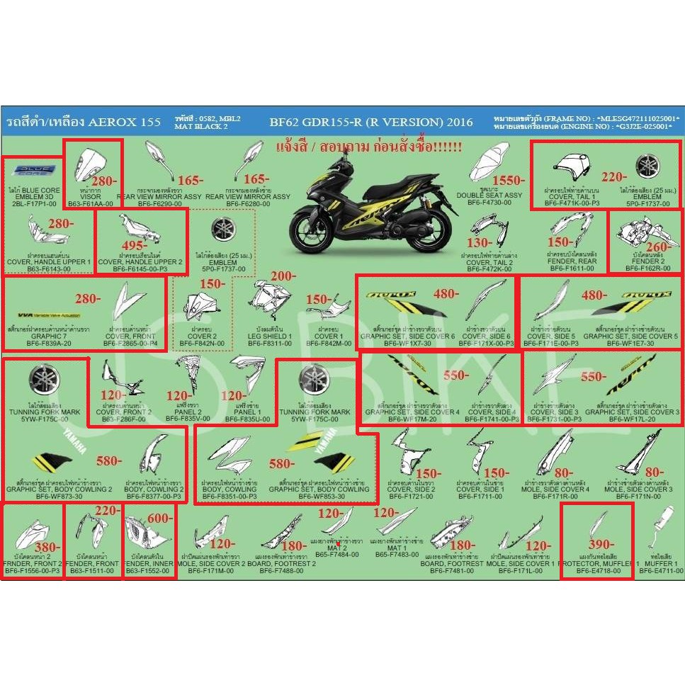 [PreOrder] ชุดสี AEROX155 แท้ สั่งได้ทุกสี เบิกศูนย์ เฟรมรถ เปลือกรถ