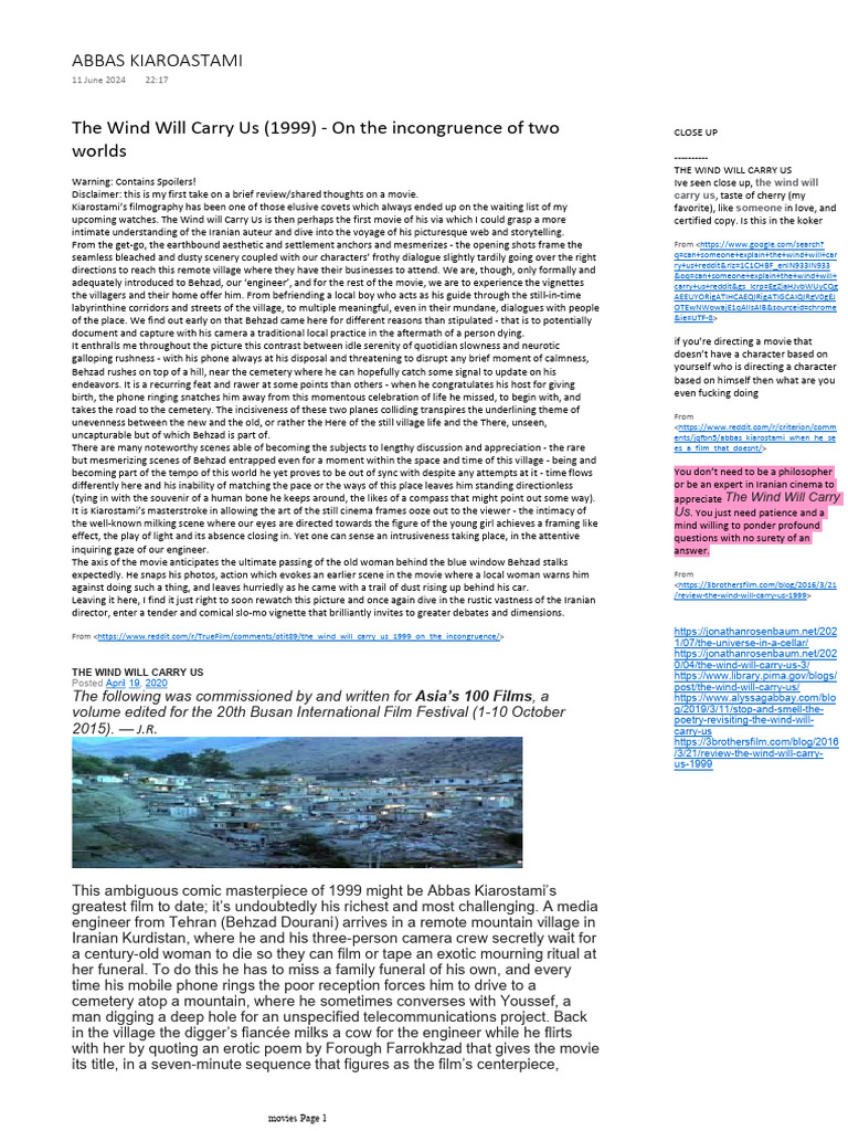 The Wind Will Carry Us 1999 Movies Tube Culture