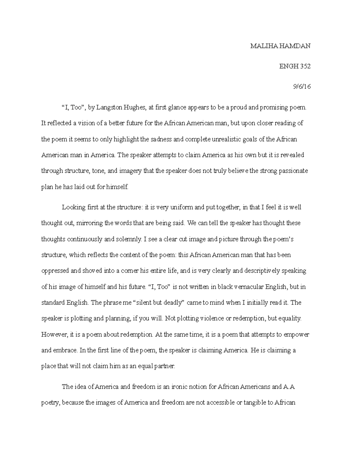 African American lit paper MALIHA HAMDAN ENGH 352 Langston Hughes, at