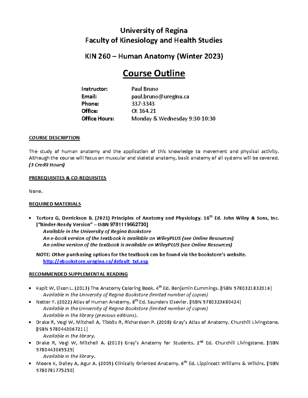 Course Outline (KIN 260 Daytime Winter 2023) KIN 260 UR Studocu