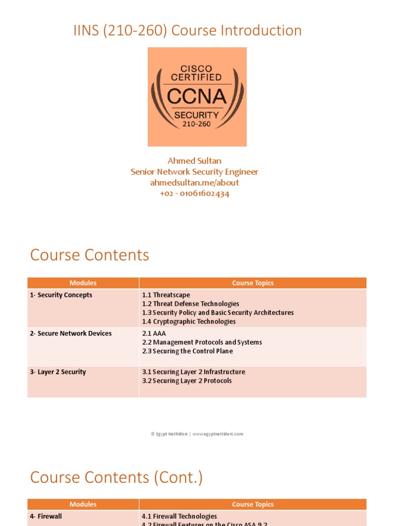 IINS (210260) Course Introduction Ahmed Sultan Senior Network