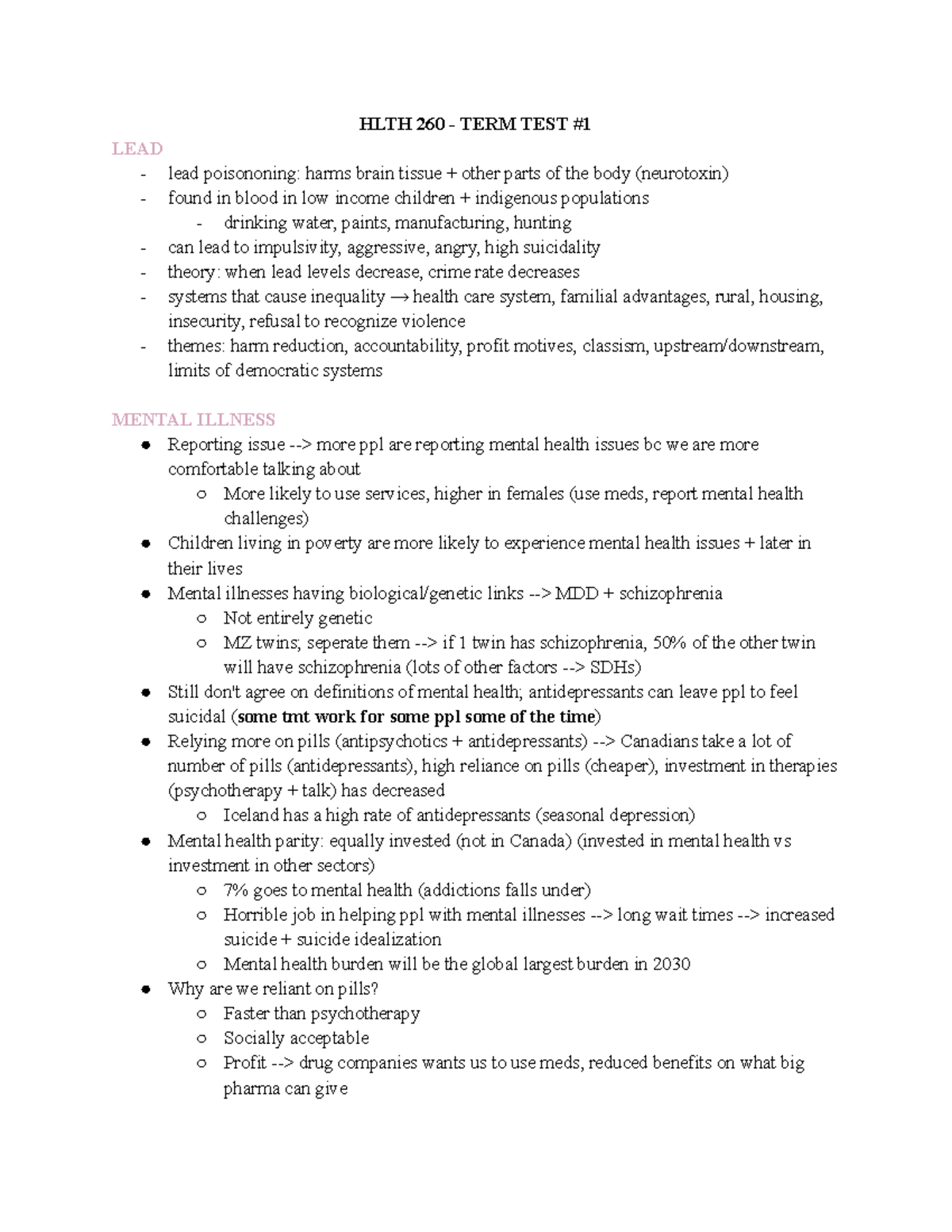 HLTH 260 Study Guide Test 1 HLTH 260 TERM TEST LEAD lead