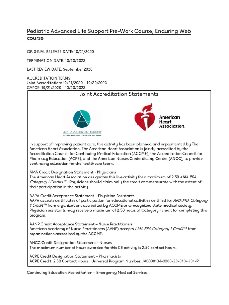 290 260 Pediatric Advanced Life Support PreWork Course LANG PDF