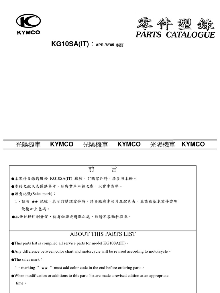 KYMCO Catalogue de Pièces Détachées d'Origine