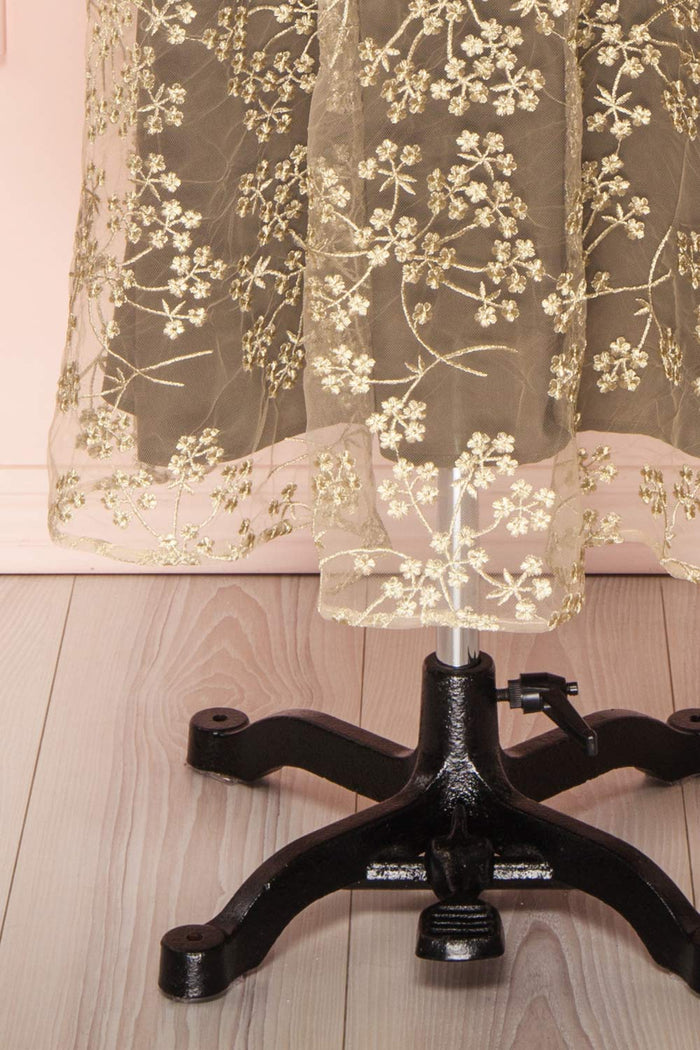 Golden Floral Mesh Midi ALine Dress Boutique 1861