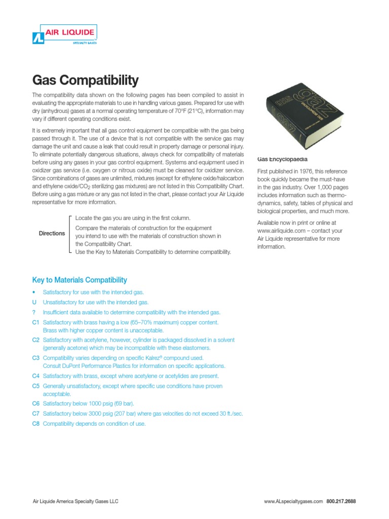 Specialty Gas Compatability Guide Air Liquide PDF Gases Chemical