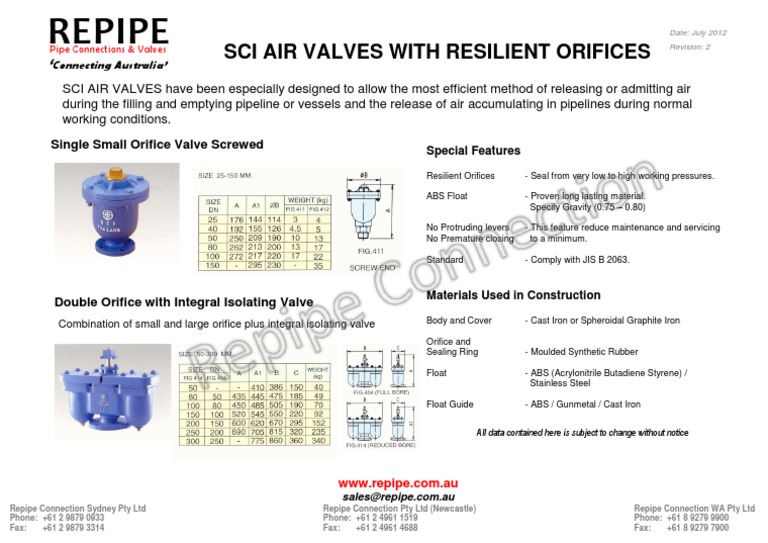 Air Release Valve Catalogue. PDF Drainage Valve