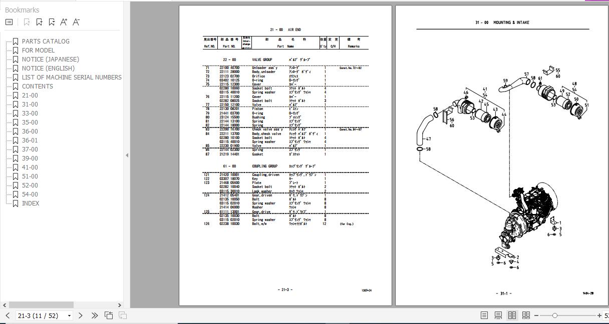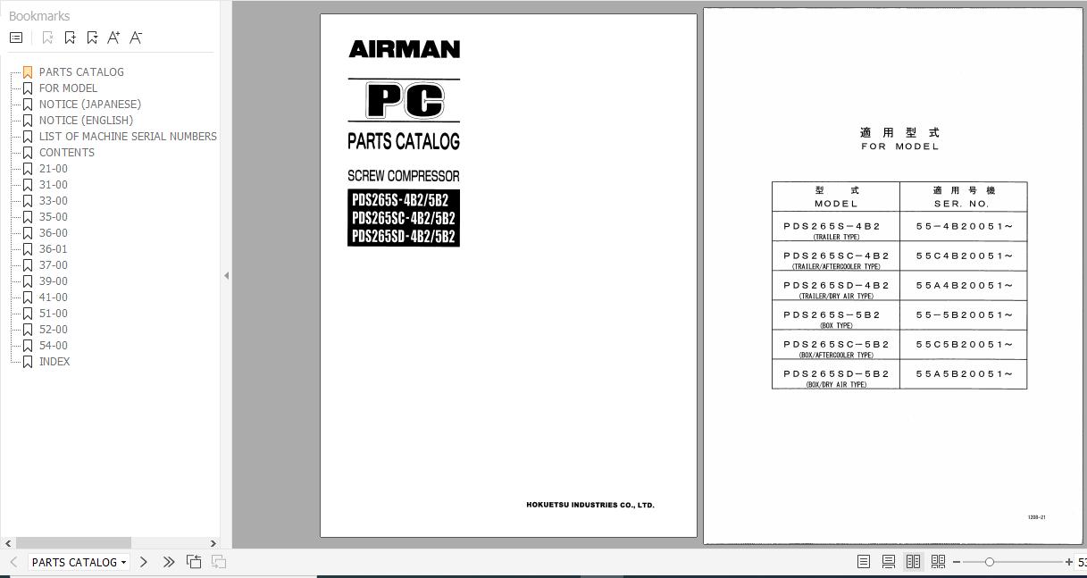 Yanmar Airman Screw Compressor PDS265S(SC)(SD) Parts Catalog EN JP