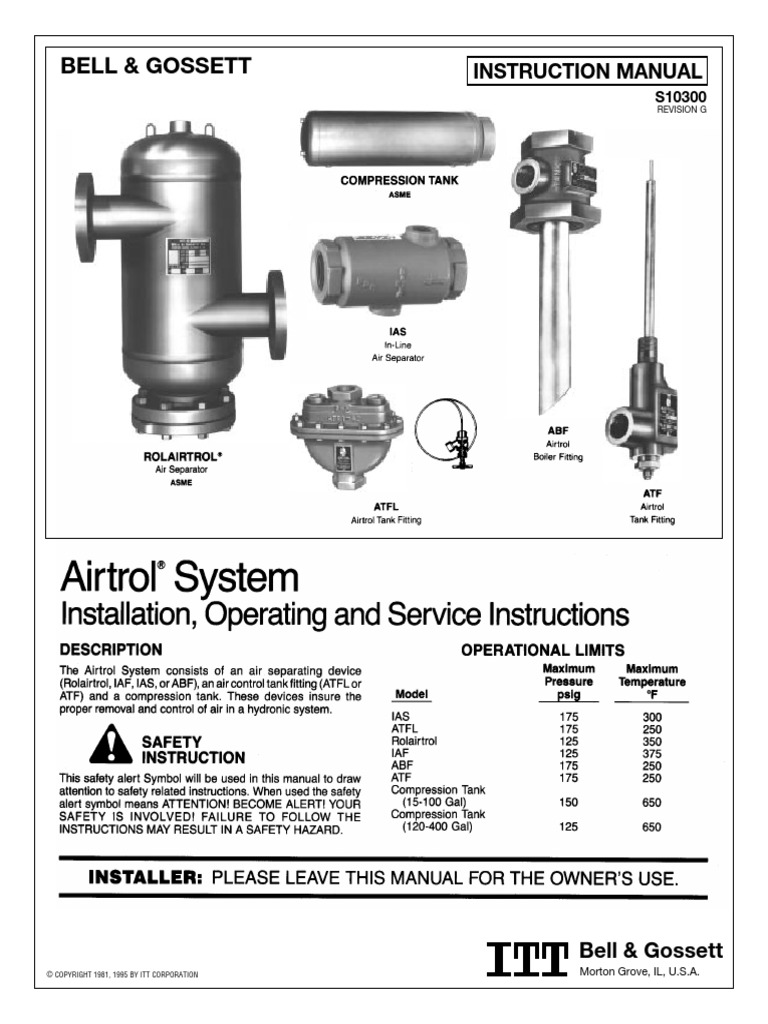 Bell Gossett S10300 Airtrol System Instruction Manual