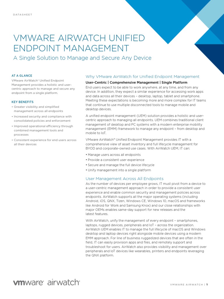 VMware AirWatch UEM Datasheet PDF Mobile App Microsoft Windows