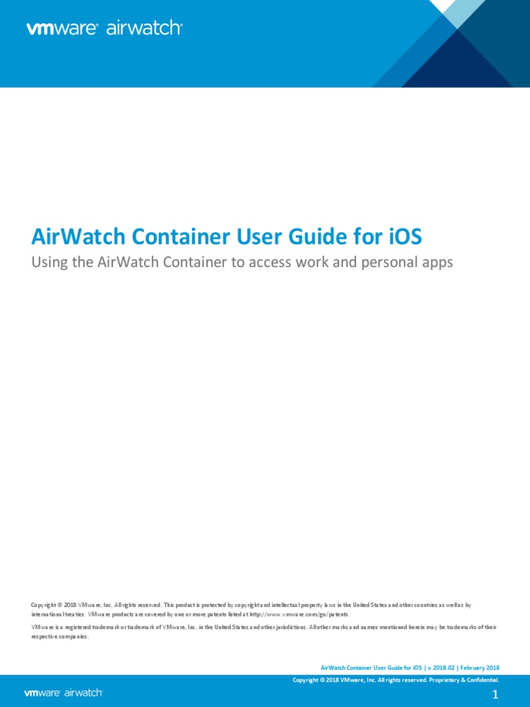 Vmware Airwatch Container For IOS User Guide PDF Mobile App Ios