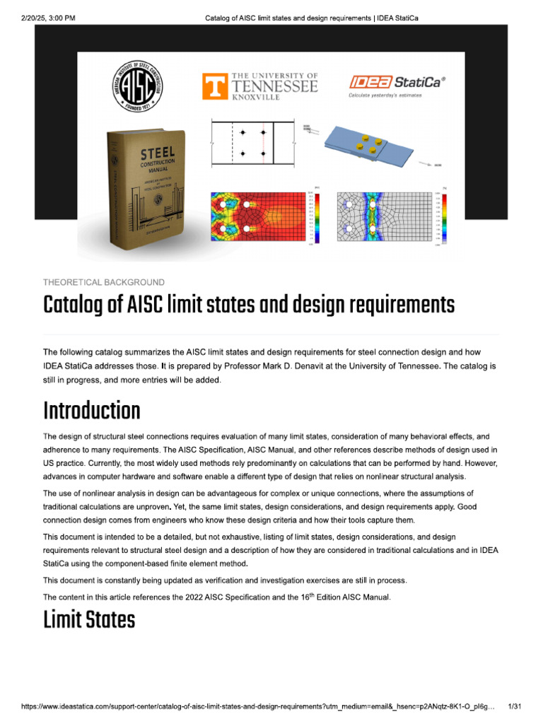 Catalog of AISC Limit States and Design Requirements IDEA StatiCa PDF