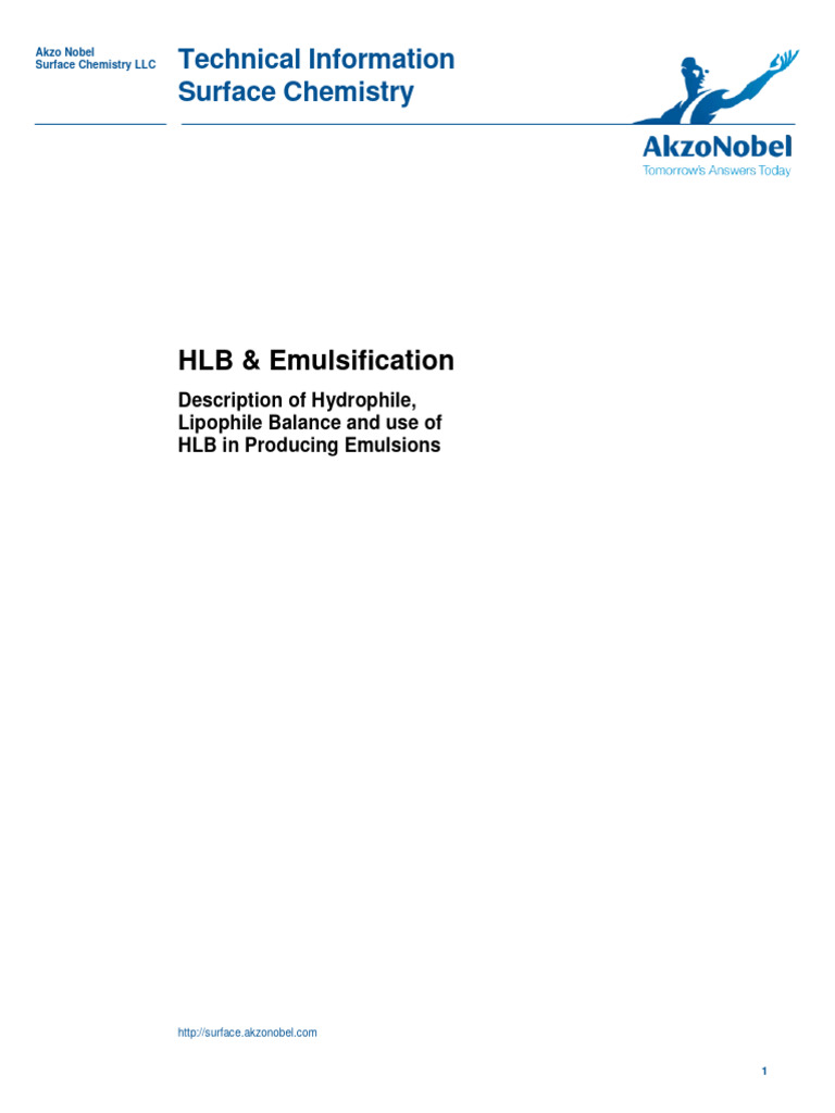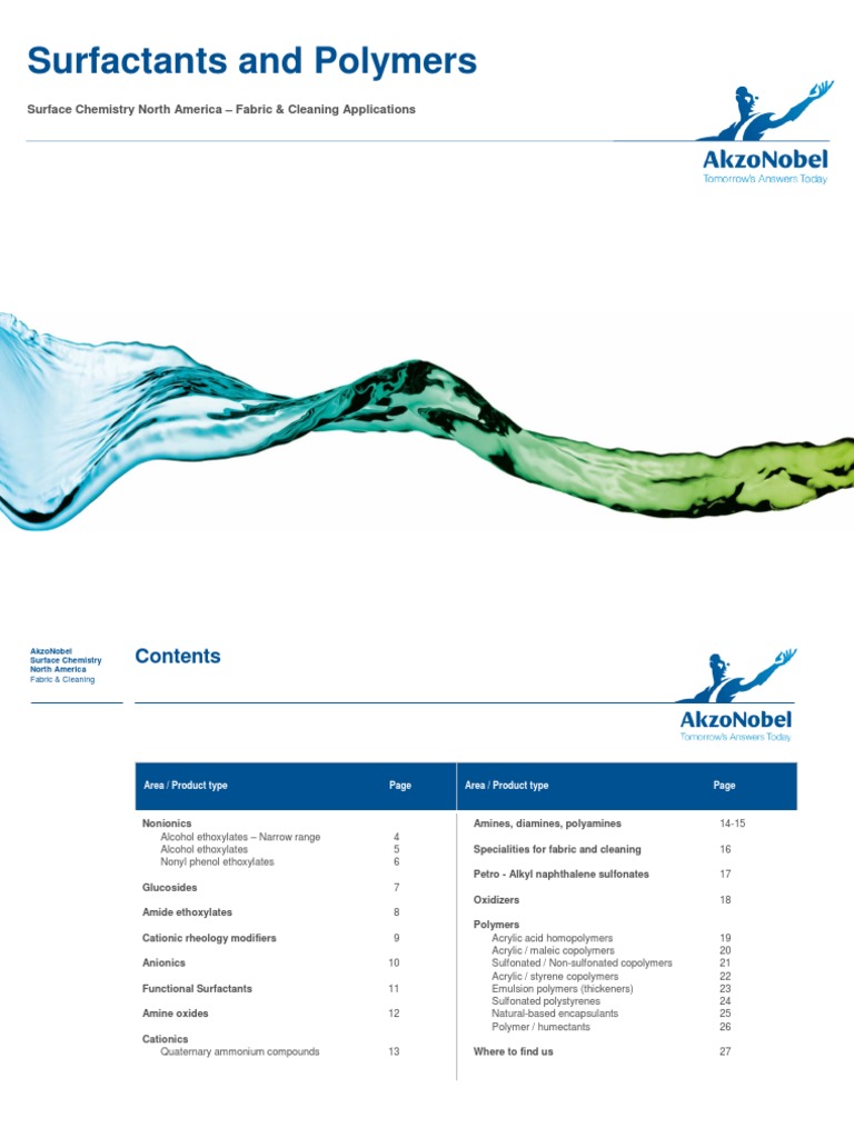 Technical Information Surface Chemistry Akzo Nobel PDF Surfactant