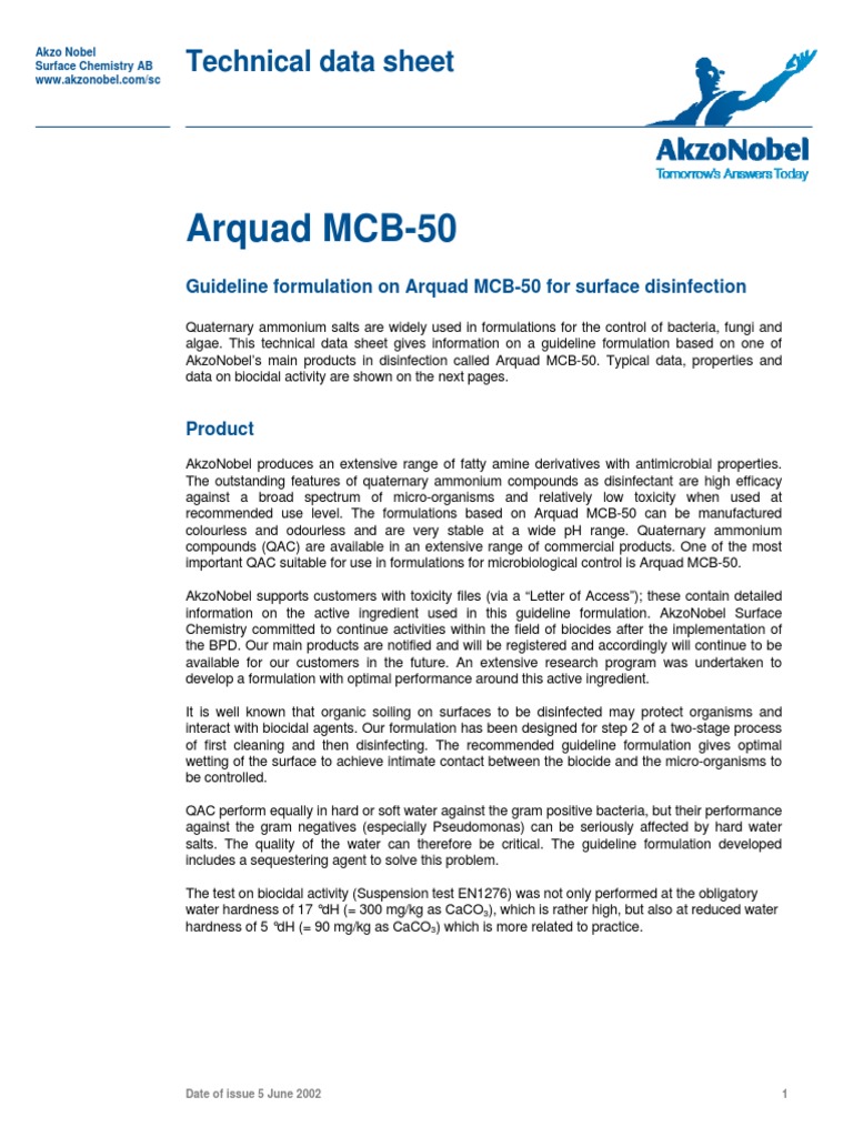 AkzoNobel Arquad MCB50 Guideline Formulation for Surface Disinfection