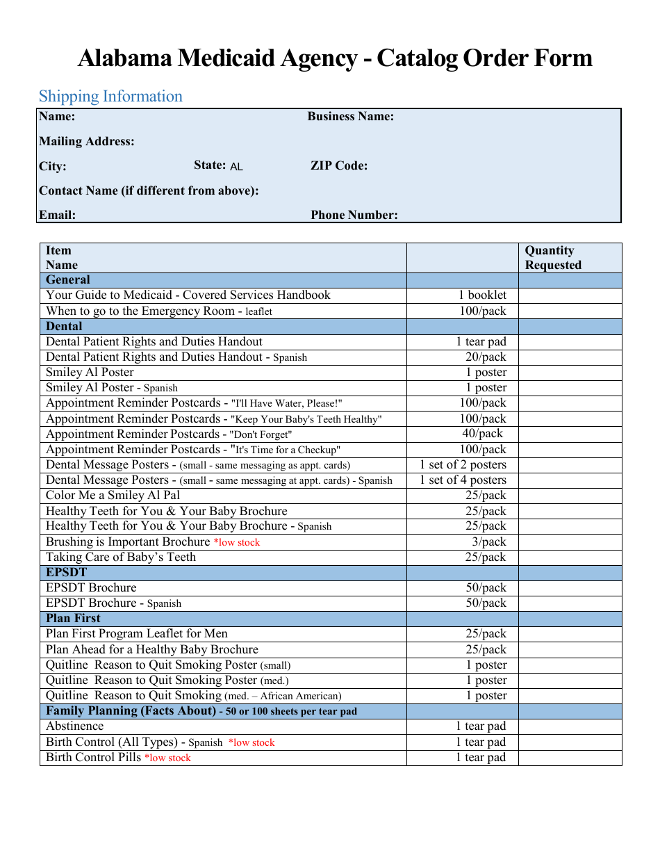 Alabama Catalog Order Form Fill Out, Sign Online and Download PDF