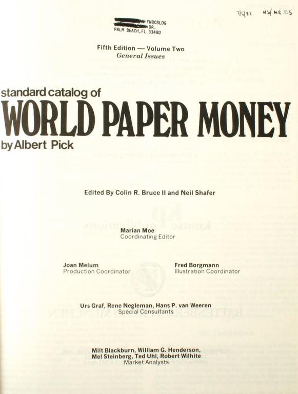Pick, Albert. Standard Catalog of World Paper Money, Volume One
