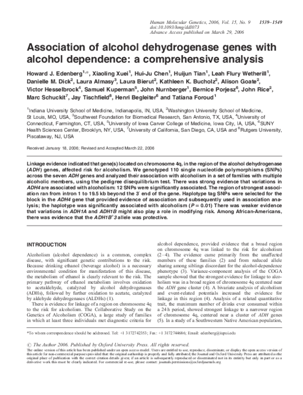 (PDF) Association of alcohol dehydrogenase genes with alcohol
