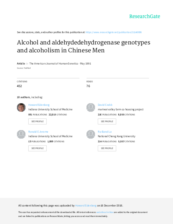 (PDF) Alcohol and Aldehyde Dehydrogenase Genotypes and Drinking