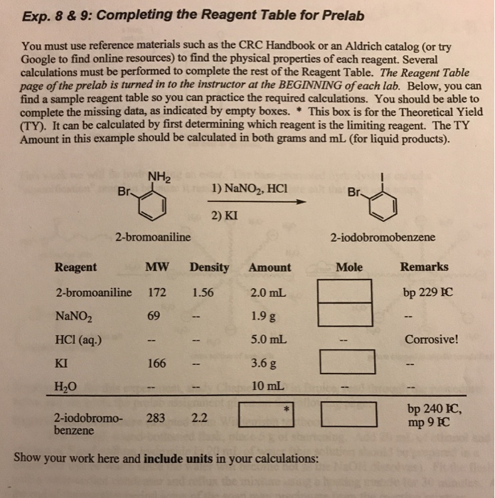 Solved Exp. 8 & 9 Completing the Reagent Table for Prelab